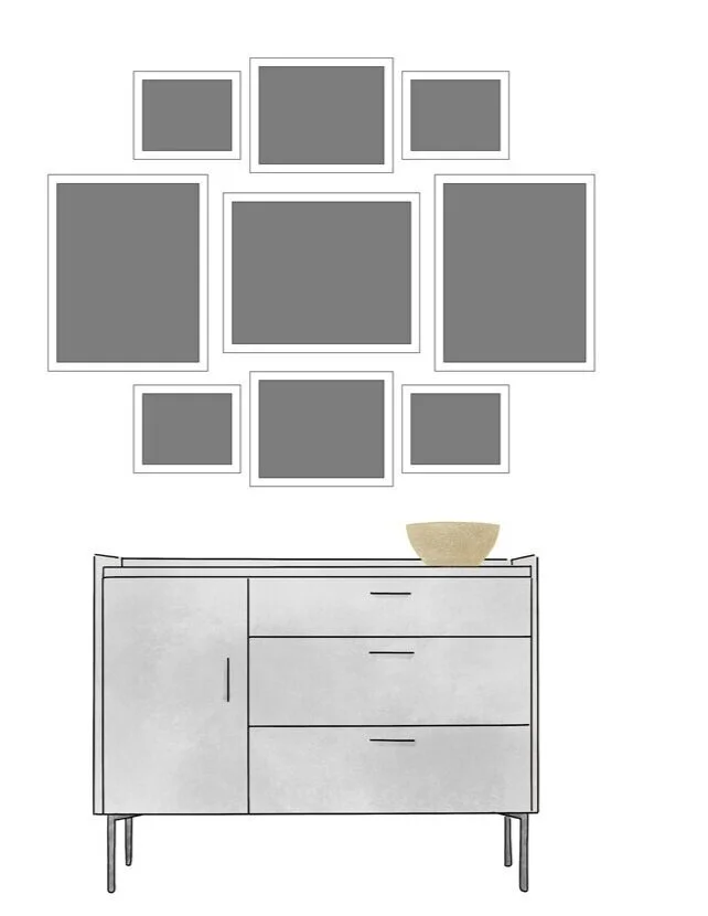 Here is a photo wall arrangement that would make a great photo family photo gallery in your home you could also check out our other blog to see other ways to present your images. For a PDF of More Gallery Wall options Claim your freebie here
